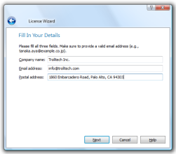 QWizardPage *createIntroPage() { QWizardPage *page = new QWizardPage; page->setTitle("Introduction"); QLabel *label = new QLabel("This wizard will help you register your copy " "of Super Product Two."); label->setWordWrap(true); QVBoxLayout *layout = new QVBoxLayout; layout->addWidget(label); page->setLayout(layout); return page; } QWizardPage *createRegistrationPage() { ... } QWizardPage *createConclusionPage() { ... } int main(int argc, char *argv[]) { QApplication app(argc, argv); #ifndef QT_NO_TRANSLATION QString translatorFileName = QLatin1String("qtbase_"); translatorFileName += QLocale::system().name(); QTranslator *translator = new QTranslator(&app); if (translator->load(translatorFileName, QLibraryInfo::path(QLibraryInfo::TranslationsPath))) app.installTranslator(translator); #endif QWizard wizard; wizard.addPage(createIntroPage()); wizard.addPage(createRegistrationPage()); wizard.addPage(createConclusionPage()); wizard.setWindowTitle("Trivial Wizard"); wizard.show(); return app.exec(); }