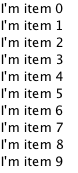 Item { width: 200; height: 250 Component { id: itemDelegate Text { required property int index text: "I am item number: " + index } } ListView { anchors.fill: parent model: 5 delegate: itemDelegate } }