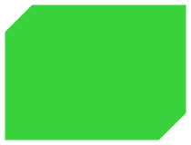 RectangleShape { id: rectangleShape anchors.centerIn: parent radius: 0 topLeftRadius: 30 bottomRightRadius: 30 bevel: true joinStyle: ShapePath.MiterJoin fillColor: "#3ad23c" strokeColor: "transparent" visible: false }