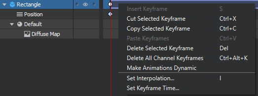 - Finally make the animation dynamic by right-clicking the time bar in the timeline palette and select Make Animations Dynamic. You need to do this on both Slide1 and Slide2. The first keyframe of each track will turn green when this is done.