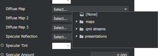 One benefit of displaying a sub-presentation as a texture is that you can use Studio presentations and QML files to map the materials of objects in your presentation. You can apply sub-presentations to any map or image property of a material, i.e. diffuse maps, specular maps and displacement maps. This way you can for example create animated textures. For performance reasons it is best to disable mipmapping for subpresentation images by setting the minification filter to Nearest or Linear.