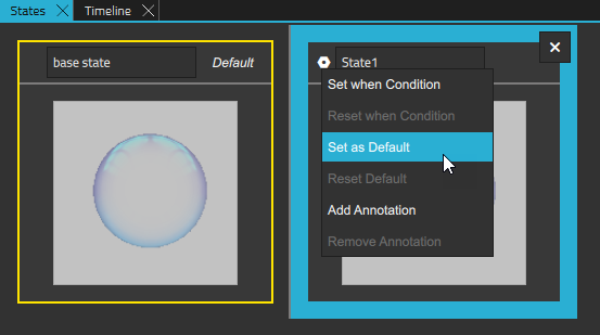 - With the new state that you just created selected in States, in Navigator, select spriteParticle and set Color to #ffffff.