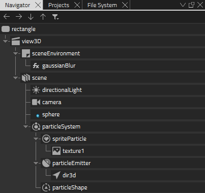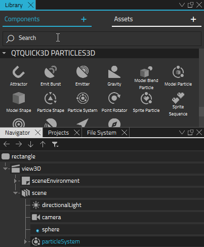 - From Components, drag a Particle Shape component to particleSystem in Navigator.