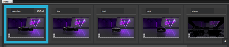 First, you create the different states. In this tutorial, you create four different states with different views of the car in the scene: