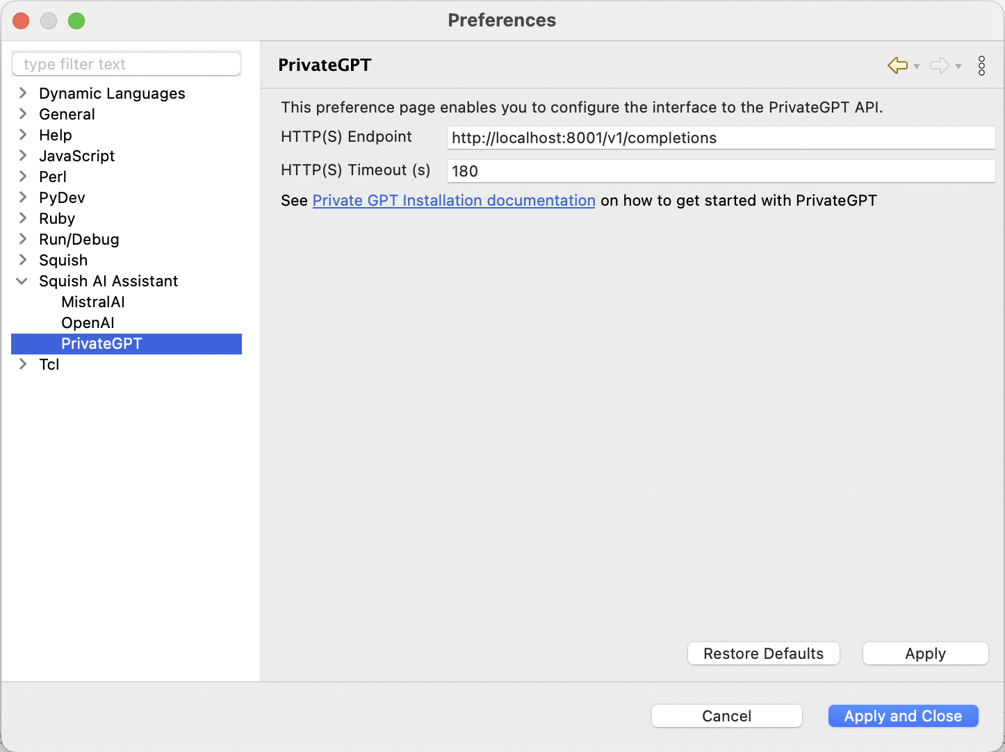 You may need to set up a local instance of PrivateGPT with your preferred model, please refer to the PrivateGPT documentation on how to do that. You can also use an instance accessible via your network.