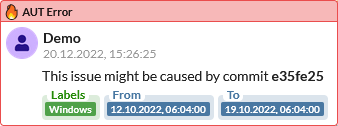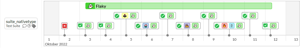 Added annotations are shown as badges within the test column on the right side of the test. The color, text, and icon defined in the annotation type settings are used for the displayed annotation badges. This in an example for an annotation badge: