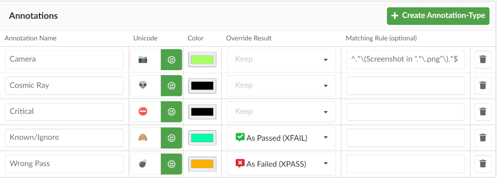 Annotations are a way to mark and comment on test results. You can filter tests by annotations, they are tracked in the statistical view of the History, and they can override results. Annotations are very versatile and customizable, so you have much freedom in how exactly you want to use them.