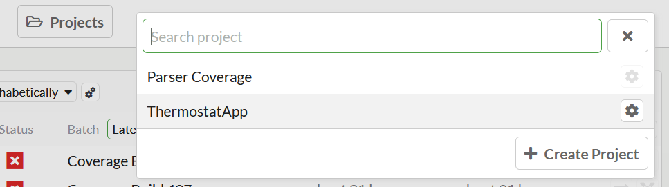 To create a new Test Center project, you usually enter a new project name during Squish test results upload, as instructed in Manual upload via the UI. However, this approach is not suitable for a new project that will be dedicated to manual tests or when you plan to import Squish tests using the repository integration. For that purpose, select Create Project within the Project search dialog on the dashboard.