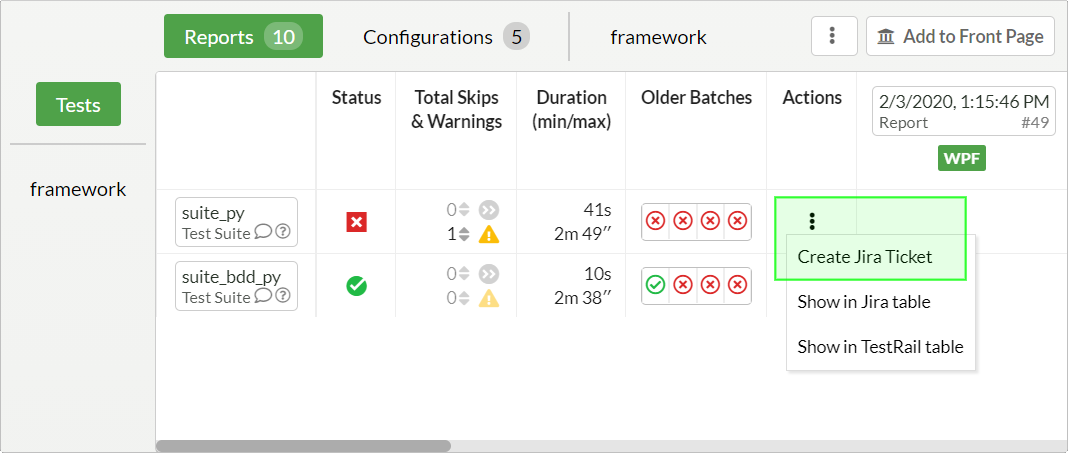 Furthermore, this allows you to push test results to JIRA. A failed result will put the JIRA ticket into a failed state (based on the workflow settings) while a passed result will put the JIRA ticket into a resolved state. The description of each linked ticket will be extended with a list of backlinks to the related test results.