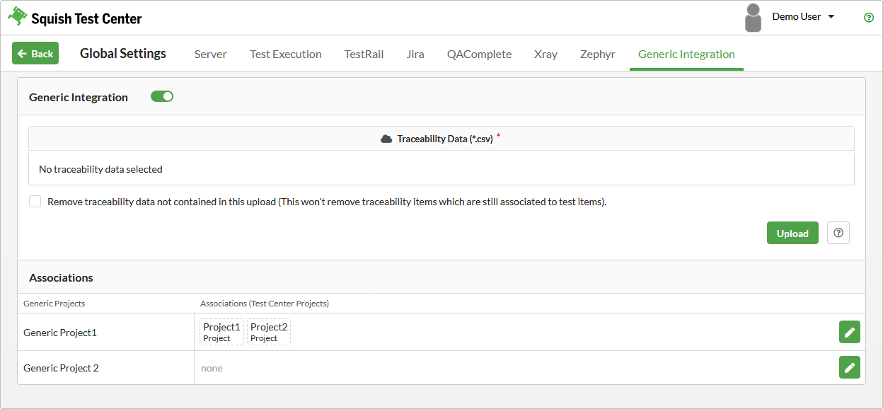 Turn on Generic Integration in Global Settings to specify settings for generic traceability.