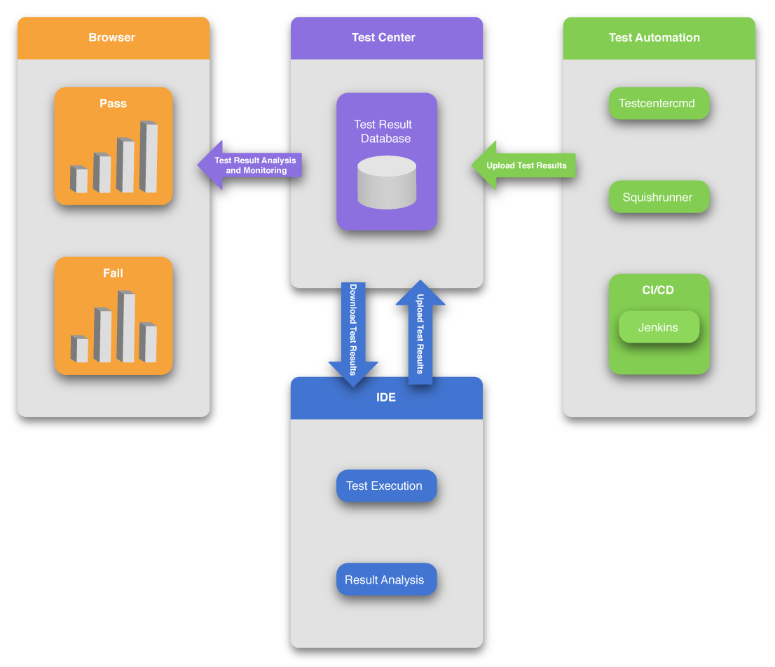 Since Test Center offers many different ways to upload results, it's easy to integrate it into many different work flows, from single user testing on a local machine to hundreds of tests executed in parallel by a continuous integration system.