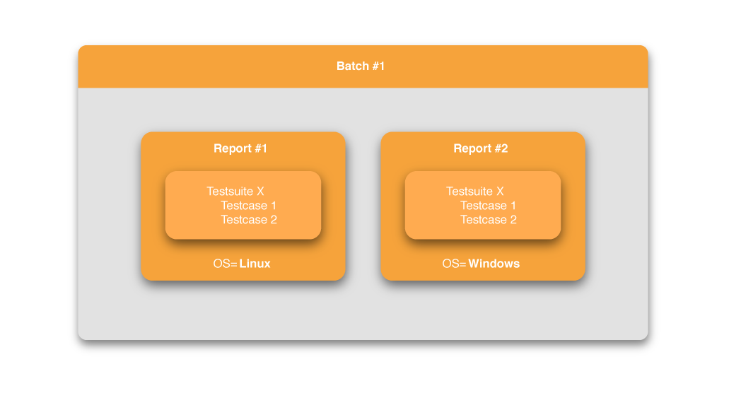 But what if we have another report from the same project, this time with different labels? For example, we might test it on different operating systems using different compilers. For this, we introduce the concept of a batch. A batch is simply a group of one or more reports.