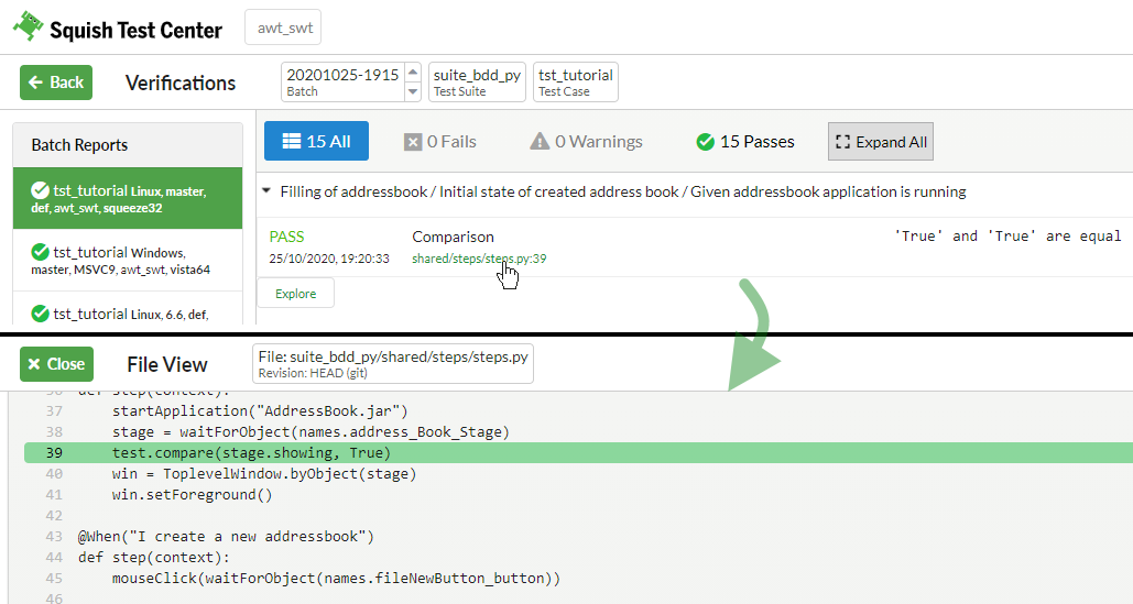 Note: Currently only Squish tests that follow the file and folder structure created by the squishide are imported to Test Center.