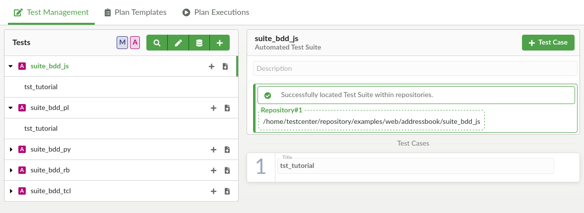 In Test Management, it is possible to verify that a test can be found and uniquely identified within the connected repositories, and where it is located on the filesystem Selecting any test, will show its details, including the test directory found by Test Center.