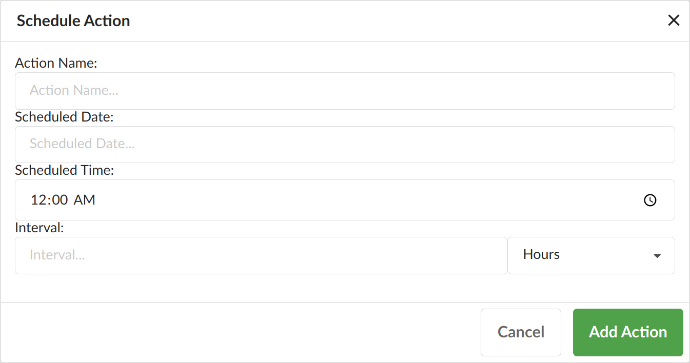 Enter a name for the action and the date and time to apply it. You can leave the Interval field empty to apply the action once.