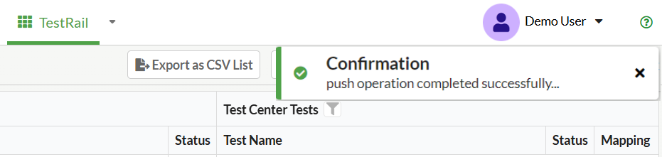 To export the associated test results of the current batch to your external system, click Push. You are notified if the push operation is completed succesfully.